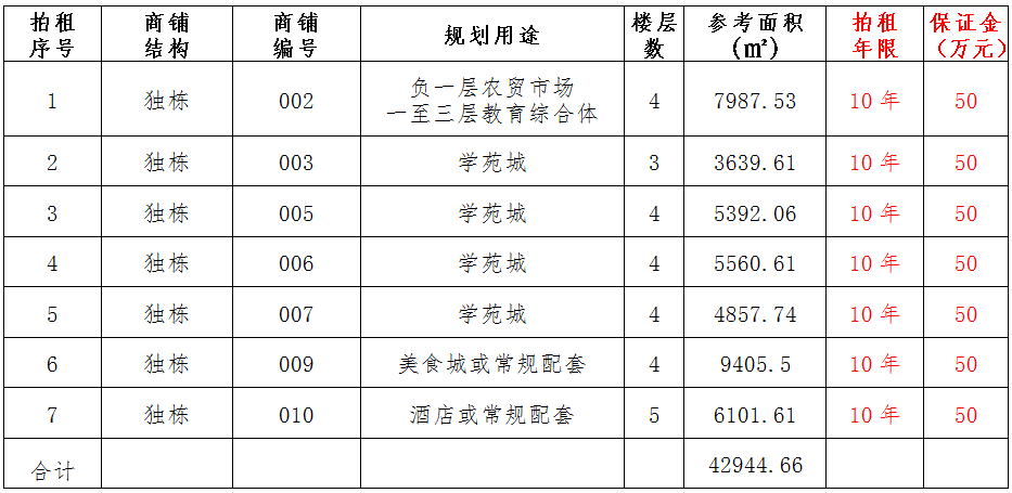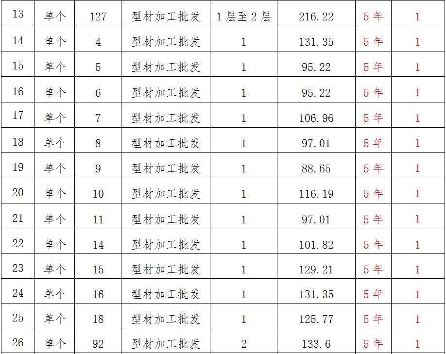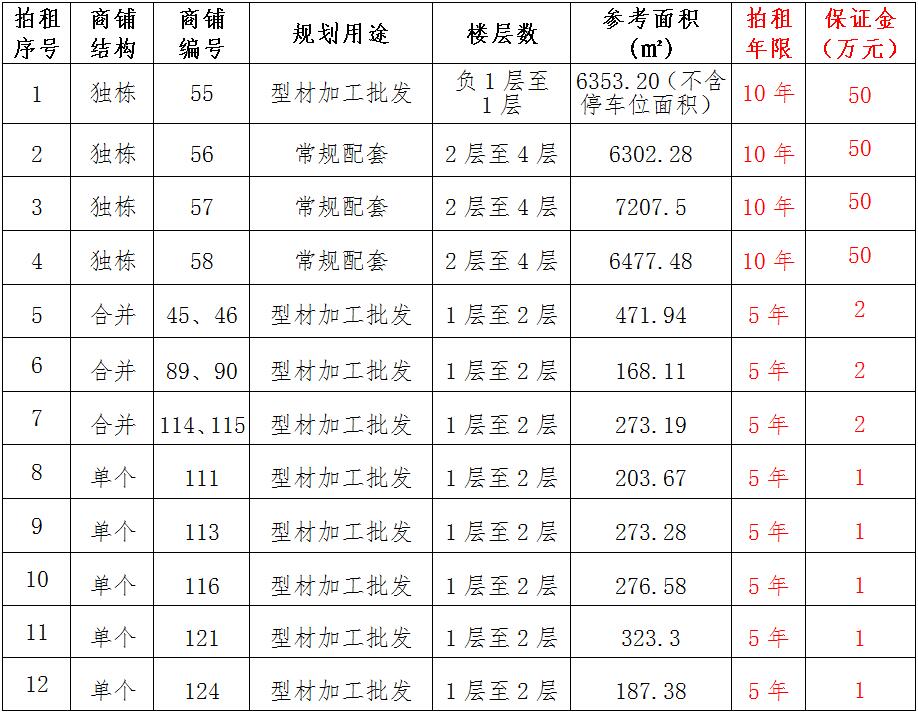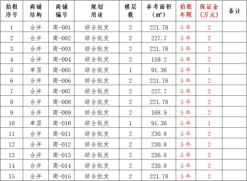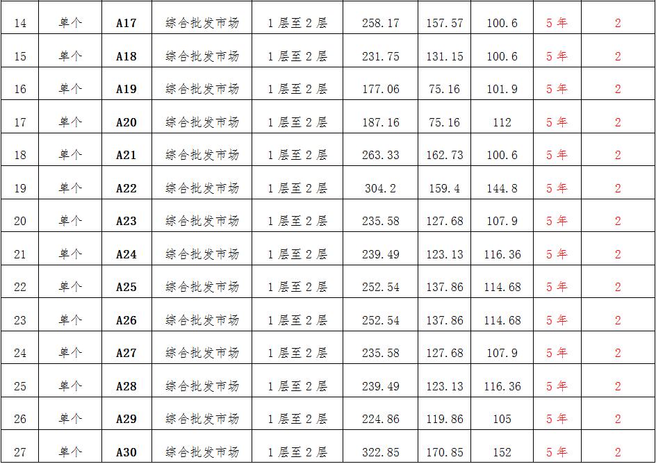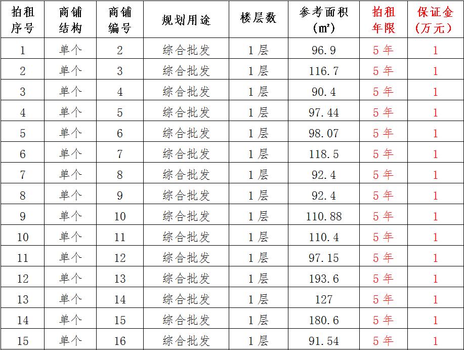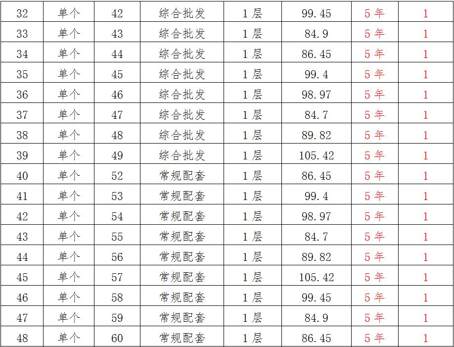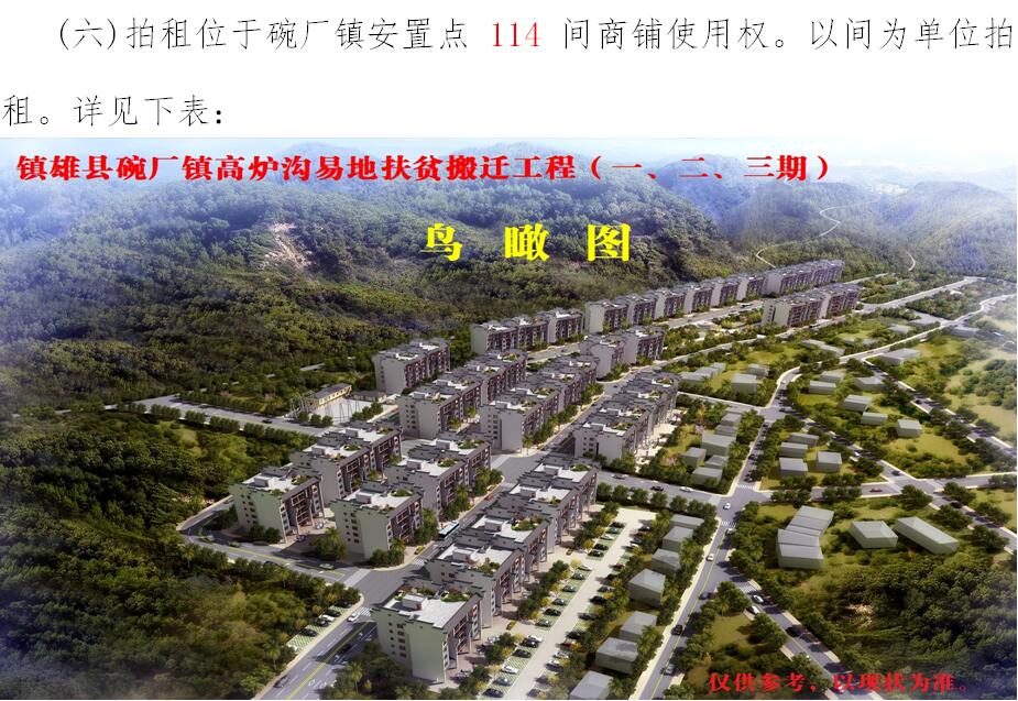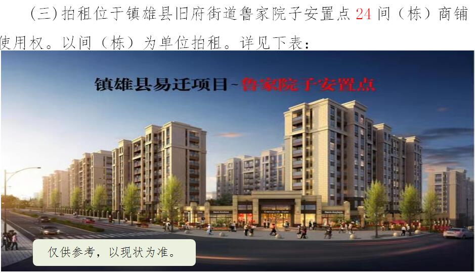 (一)拍租位于鎮(zhèn)雄縣南臺街道呢嚕坪安置點7棟獨立商鋪使用權。以棟為單位拍租。詳見下表: