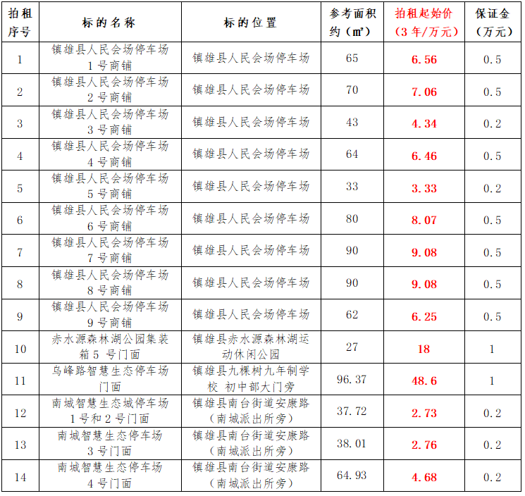 鎮(zhèn)雄縣國(guó)有資產(chǎn)使用權(quán)拍租公告